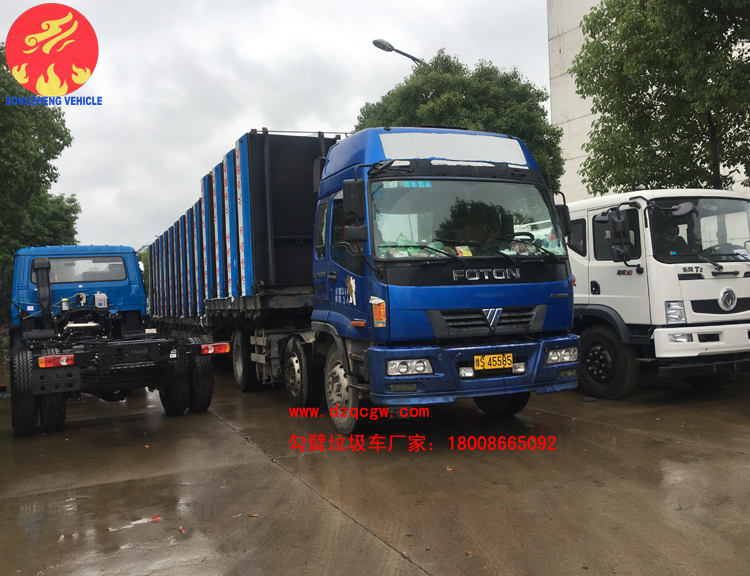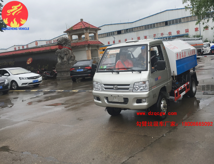 我公司生產(chǎn)的勾臂垃圾車采用高新設(shè)計可伸縮的鉤臂,實現(xiàn)垃圾廂的二次吊裝,自吊上放下,可自行傾倒垃圾。該車結(jié)構(gòu)簡單,操作穩(wěn)定方便,裝卸效率高,機械化程度高,節(jié)省人力。一車可帶多個大廂,在裝卸的運輸過程中可有效地避免二次污染。