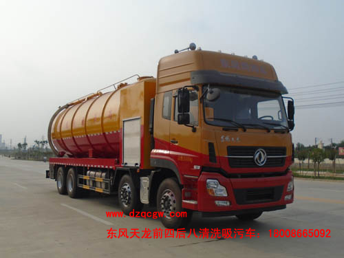 底盤說明:東風天龍前四后八新款駕駛室,1850+4600+1350mm軸距,康明斯315馬力發動機,12檔變速箱,5.5t/10t雙后橋,11.00R20輪胎,帶ABS。吸污罐體有效容積:18立方米,水罐罐體有效容積:10立方米。罐體尺寸為直段長×直徑(mm):7100×2350,其中罐體前端為清水罐(外形尺寸長2600mm);后端為污水罐(外形尺寸長4500mm)。 |