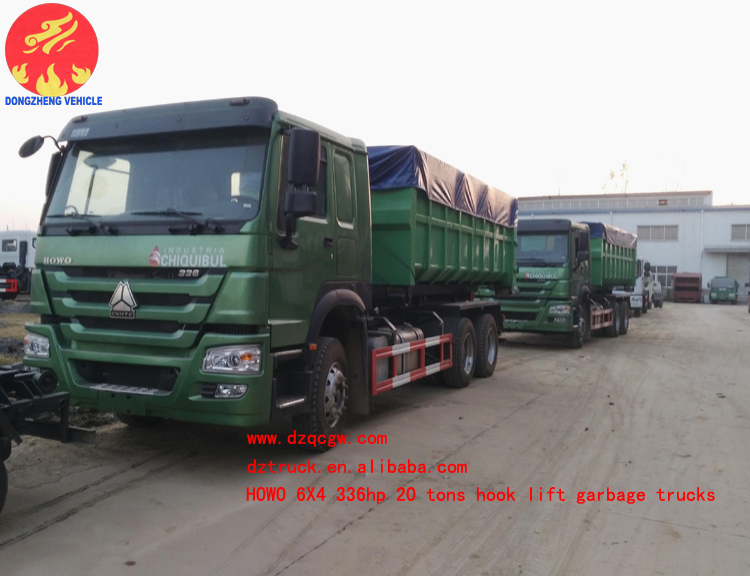 重汽豪沃重型勾臂垃圾車已調(diào)試并裝運完畢,等待船期,即日準備發(fā)往港口。