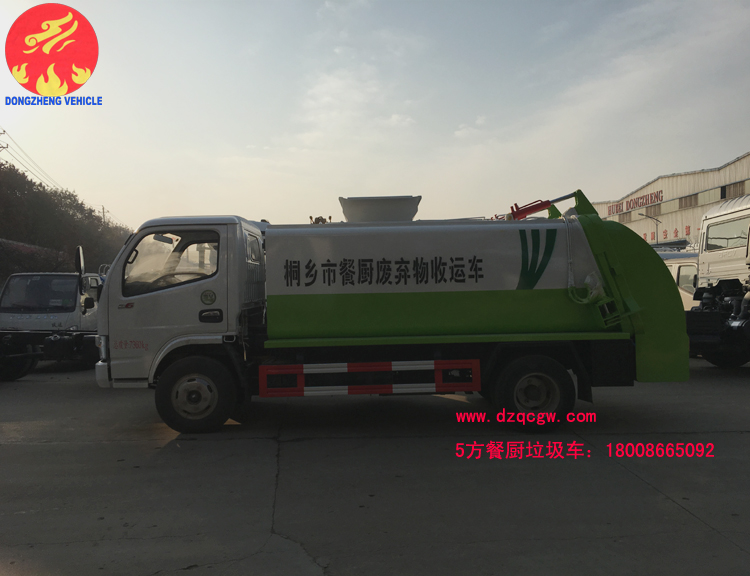 浙江省嘉興市桐鄉(xiāng)市政在我公司訂購6臺餐廚垃圾車,該餐廚垃圾車采用東風(fēng)小多利卡國五底盤,朝柴102馬力,3308mm軸距,鋼絲胎,ABS。圓形碳鋼罐體,罐體厚度5mm,拉桿提升機帶上蓋聯(lián)動;后蓋液壓開啟;內(nèi)置推鏟卸料,帶渣液分離功能。餐廚垃圾車可分罐式和廂式。
