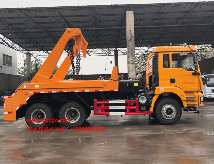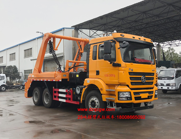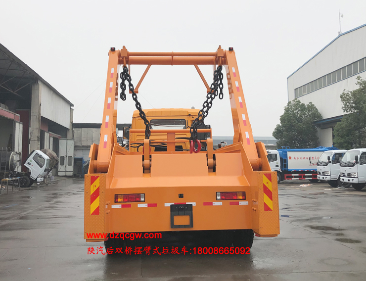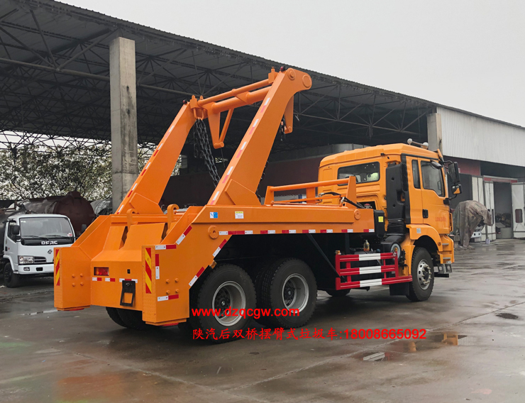 25噸設計款陜汽后雙橋擺臂式垃圾車已生產完畢,準備出廠。