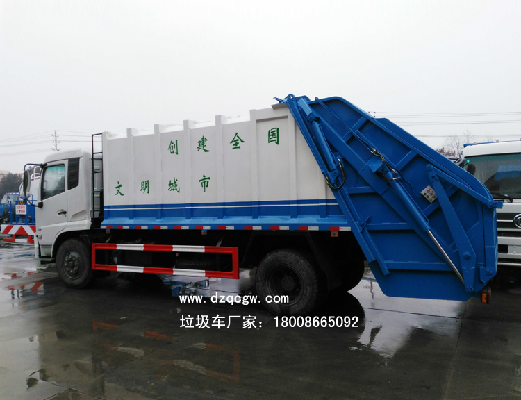 底盤說明:東風天錦排半可前翻駕駛室,4700mm軸距,ISB180-40康機180馬力柴油共軌國四發動機,4.5噸前橋,9噸后橋,東風6檔變速箱,9.00R20鋼絲胎,帶空調,ABS。 上裝說明: 廂體材料為武鋼優質炭鋼,厚度為邊5mm,廂體容積為14立方米。由裝料機構、壓縮機構、卸料機構、油泵、油箱、控制閥等組成的液壓機構組成。裝料機構由支架、連桿機構、凸輪、掛鉤等組成,在油缸作用下,將垃圾桶內的垃圾自動翻轉倒入料斗內。新款有9支液壓缸制動,不帶副壓板,液壓控制操作系統為電動控制和手動控制。 后翻轉機構選裝:1、掛桶翻轉機構(可選帶鐵桶或塑料桶),手動及電控操作 2、簸箕斗翻轉機構 3、擺臂式翻轉機構 |
