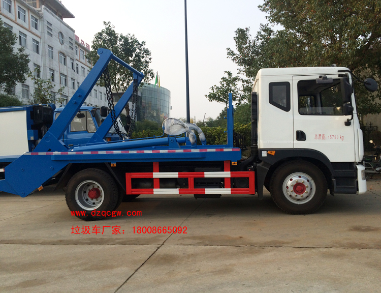 上裝說明: 產品介紹:擺臂式垃圾車加裝統一配套液壓舉升總成,通過左右兩臂裝運全國統一擺臂式垃圾斗,可一車配多廂,帶自卸功能,可自行傾倒垃圾。 可加裝密封蓋,防止泄露飛揚污染,在裝卸的運輸過程中可有效地避免二次污染,以適應不同環境使用要求,該車結構簡單,操作穩定方便,裝卸效率高,機械化程度高,節省人力,采用國內領先技術及軍工企業配件,質量可靠,安全穩定,可由生產廠家為用戶提供垃圾廂圖紙,協助用戶設計垃圾廂。